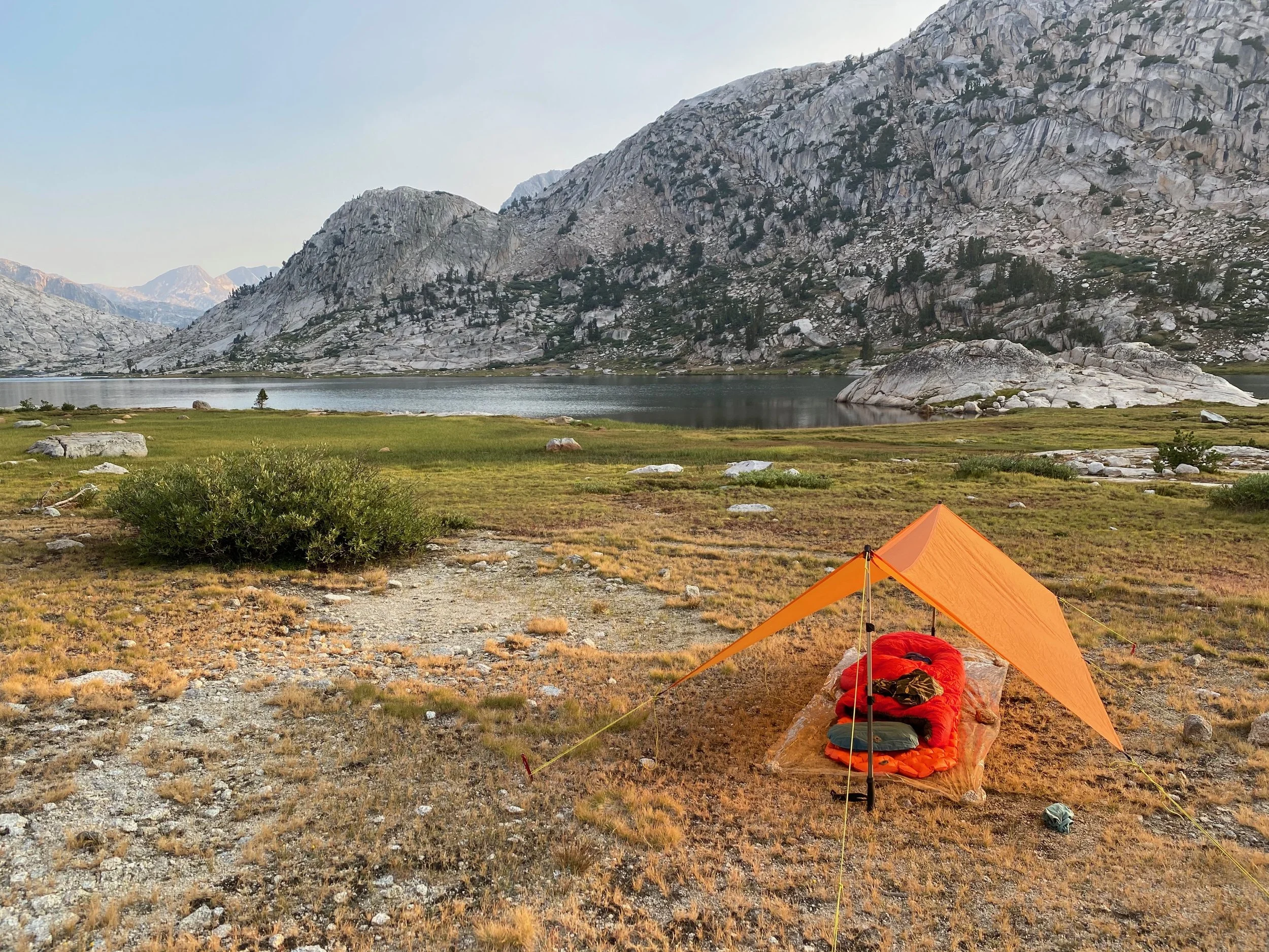 My tarp in “porch mode”. It can pitched in different ways depending on the weather.