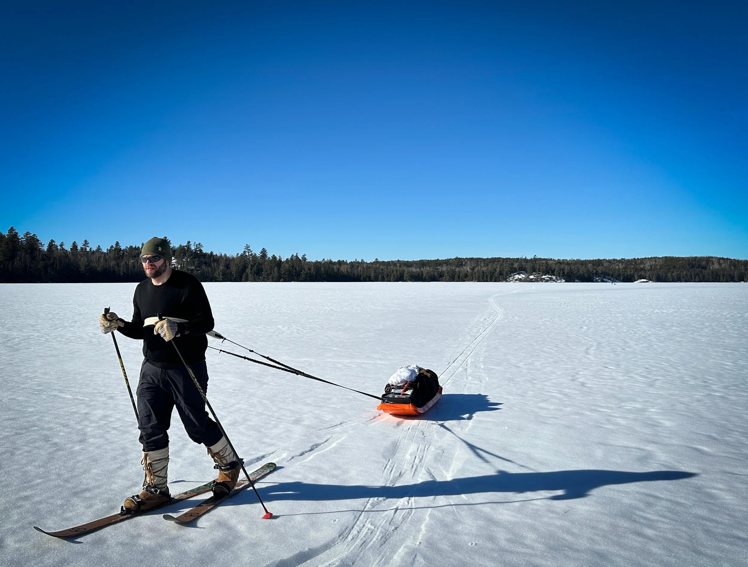 For the past couple of years, I’ve been itching to do a winter camping adventure that would be less about cozy basecamps; and more about covering bigger miles. After finding some interested friends, we started to make plans. Poring over maps in a coffee shop, we dreamt about route ideas and where to go. As our fingers followed imaginary lines of travel, our minds filled with the wildlife, pictographs, and pine-studded islands we might pass along the way. Someone suggested crossing the border.